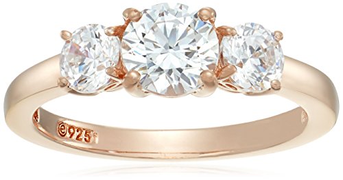 Previous ImageNext Image Rose-Gold-Plated-Sterling-Silver-Round-3-Stone-Ring-made-with-Swarovski-Zirconia-2-cttw-Size-8