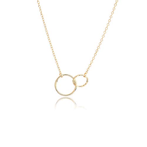 Previous ImageNext Image Mother-Daughter-Layered-Pendant-Necklace-14K-Coin-Gold-Plated-Choker-Necklaces-Two-Rings-Gold-Necklace-Jewelry-Gift-for-Women-Girls