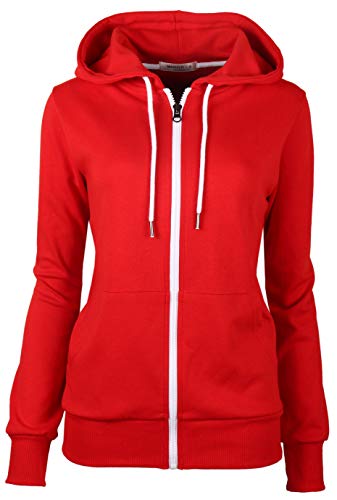Previous ImageNext Image MAJECLO-Womens-Slim-Fit-Casual-Full-Zip-Hooded-Lightweight-Long-Sleeve-Sweatshirt-Medium-Red
